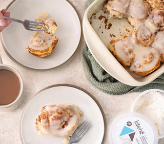 - Once the oven is hot, bake rolls for 25-30 minutes or until slightly golden brown. Let cool for a few minutes and serve immediately with cream cheese frosting.